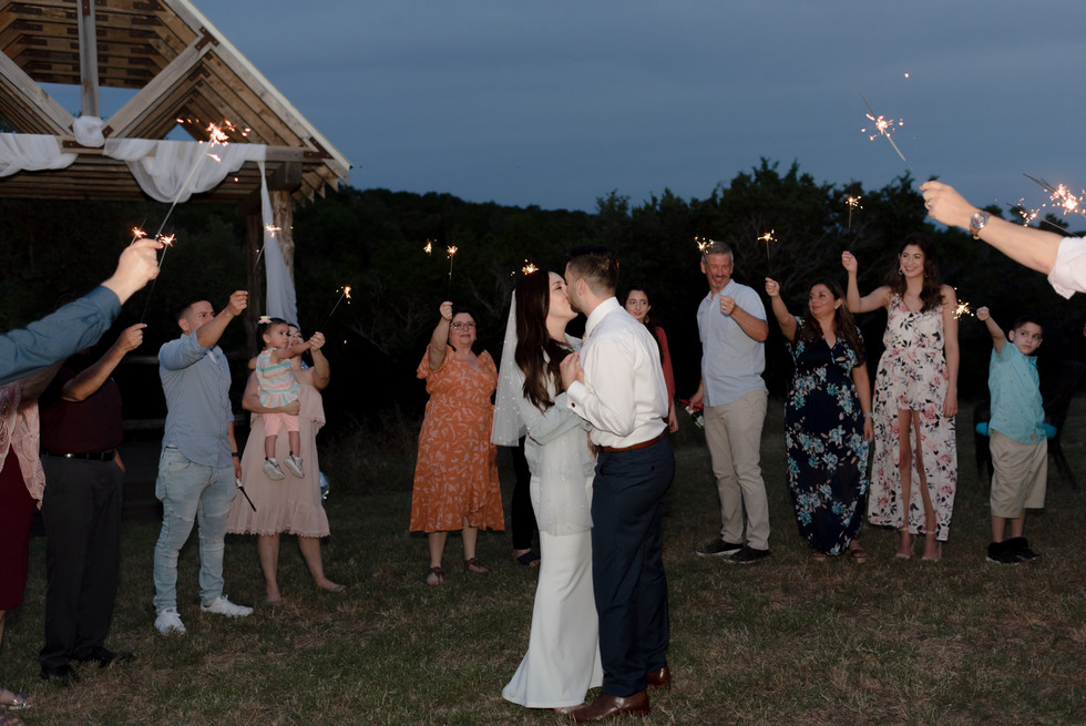 The pavilion at Hill Country Casitas has the most beautiful, expansive view of the hill country. As they ate, their guests said some impromptu speeches, they cut their wedding cake, and ended the night with a sparkler circle first dance. It was a beautiful wedding day and I'm so grateful to have been included as the only non-family member to tell their story!!