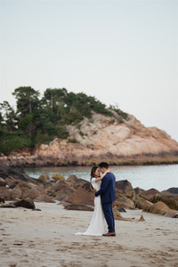 One of the most important aspects for Wendy and Young was to have a private area for their ceremony. So after we made our way to the coast, we explored a bit to find the absolute perfect spot for them to say their "I do"s. I really love how intentional and meaningful it was for them. Wendy scrambled over some pretty craggy areas like an absolute pro in her dress and heels!! And hey it made for some great photo ops!